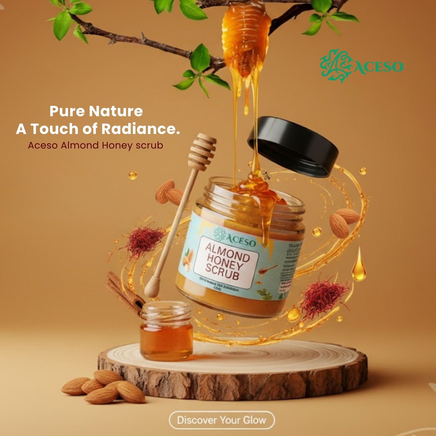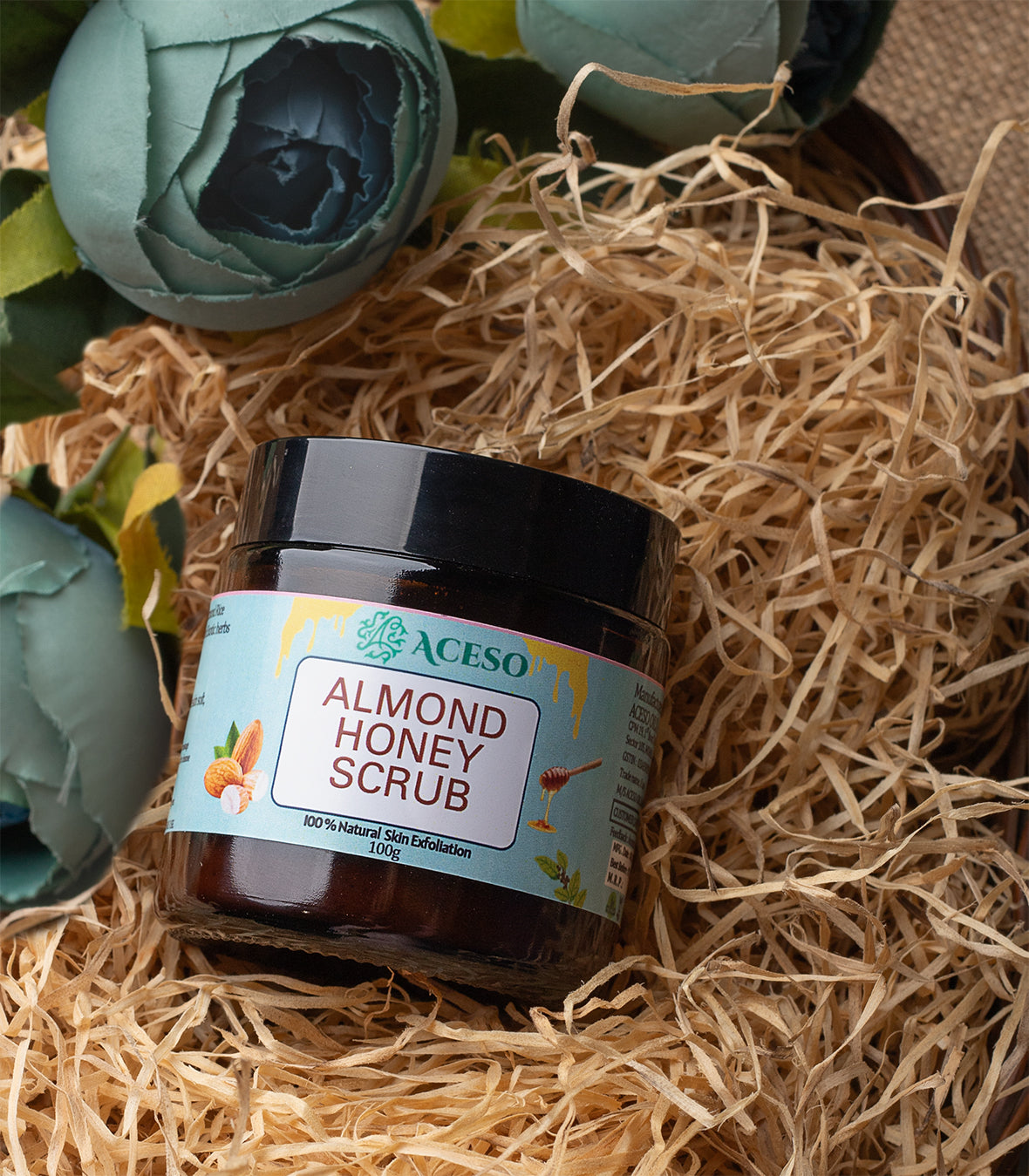1. Take a small amount of Almond Honey Scrub on damp skin and gently scrub in a circular motion for 5-7 minutes