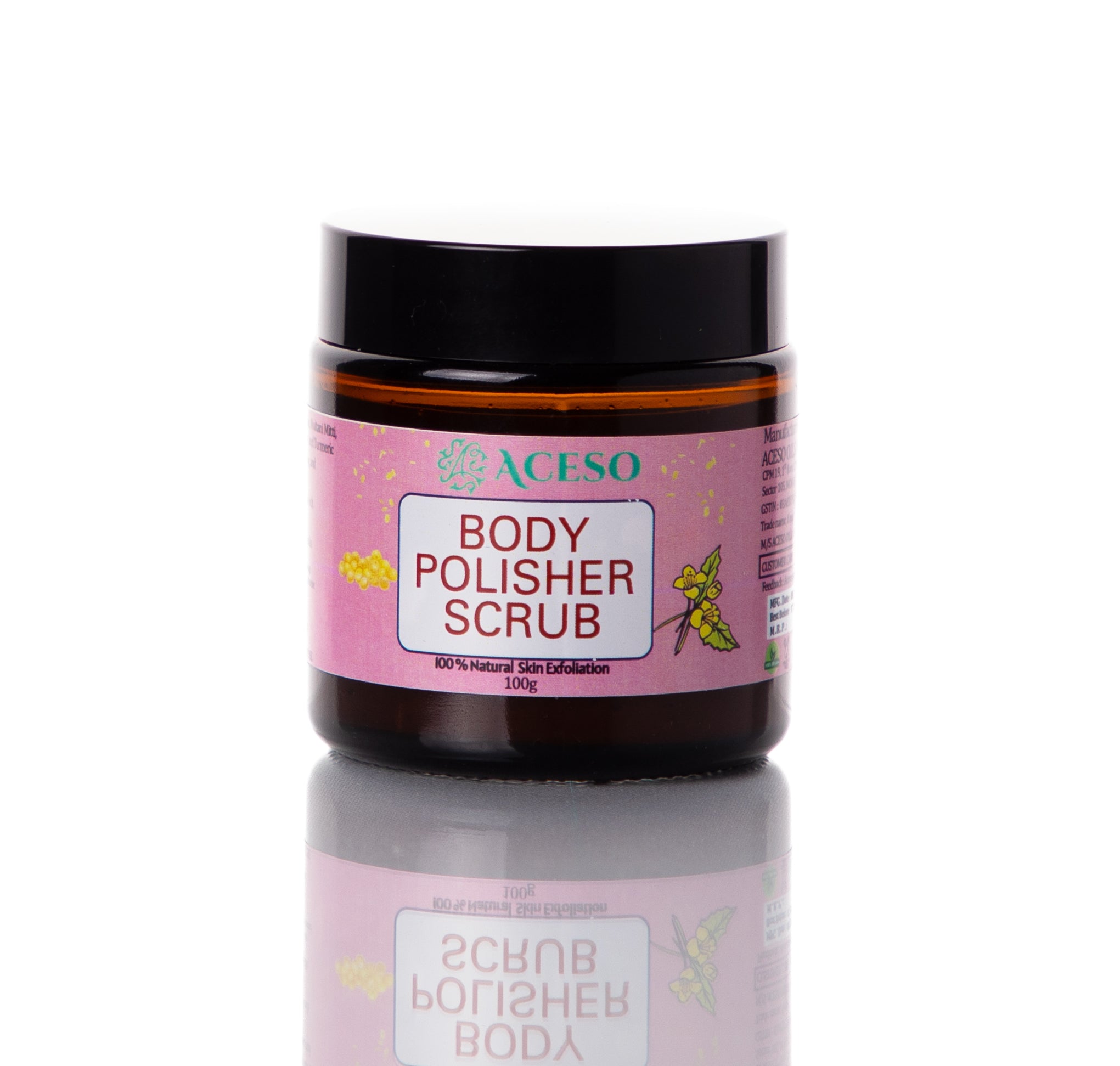 Body Polisher Scrub is a 100% natural, handmade scrub that detoxifies the skin and removes impurities while nourishing and hydrating for a soft, radiant glow. Exfoliate your skin effectively with this natural body and face scrub, which sloughs off dead cells and dirt and enhances skin hydration with the power of yellow mustard seeds.