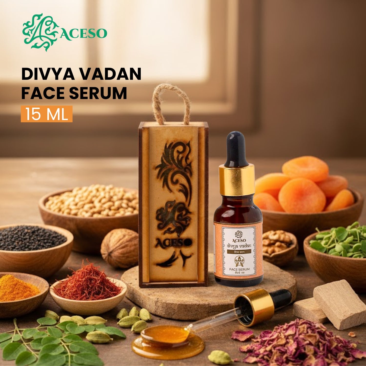 Divya Vadan Face Serum deeply hydrates, brightens, and smooths skin. Lightweight, fast-absorbing formula leaves a glowing, refreshed complexion with every use.